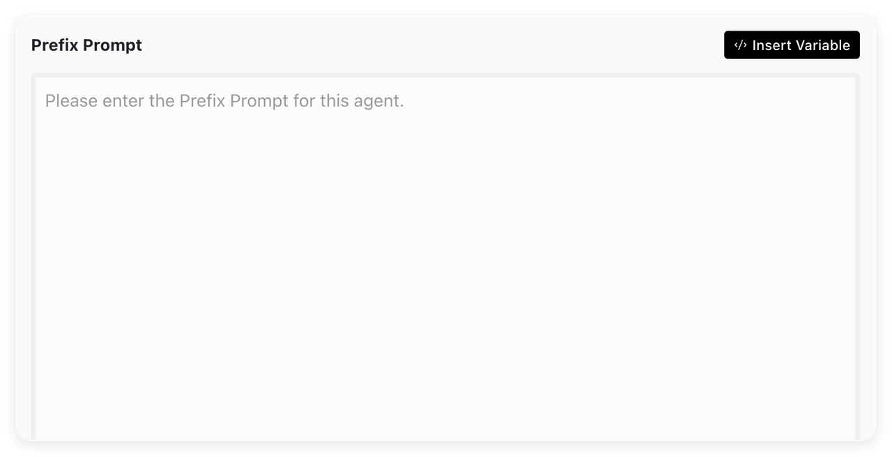A predefined text added before the user input to guide the model's response. Variables can be embedded in the prefix prompt to customize it dynamically.
