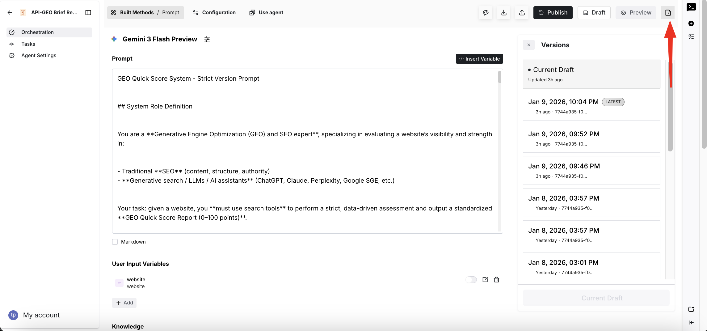 Restore: Put a Historical Version Into Current Draft